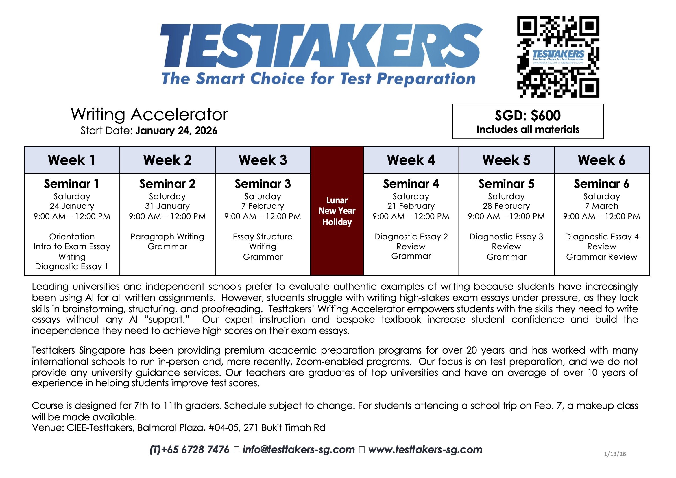 Leading universities and independent schools prefer to evaluate authentic examples of writing because students have increasingly been using AI for all written assignments. However, students struggle with writing high-stakes exam essays under pressure, as they lack skills in brainstorming, structuring, and proofreading. Testtakers’ Writing Accelerator empowers students with the skills they need to write essays without any AI “support”. Our expert instruction and bespoke textbook increase student confidence and build the independence they need to achieve high scores on their exam essays. AI has taken away many students’ ability to write, this will bring it back.